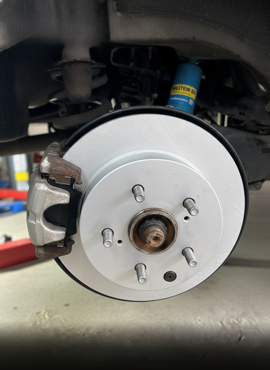 Brakes: I performed a full four-corner overhaul, swapping in fresh rotors and pads to ensure the friction surfaces were perfectly matched for maximum bite.