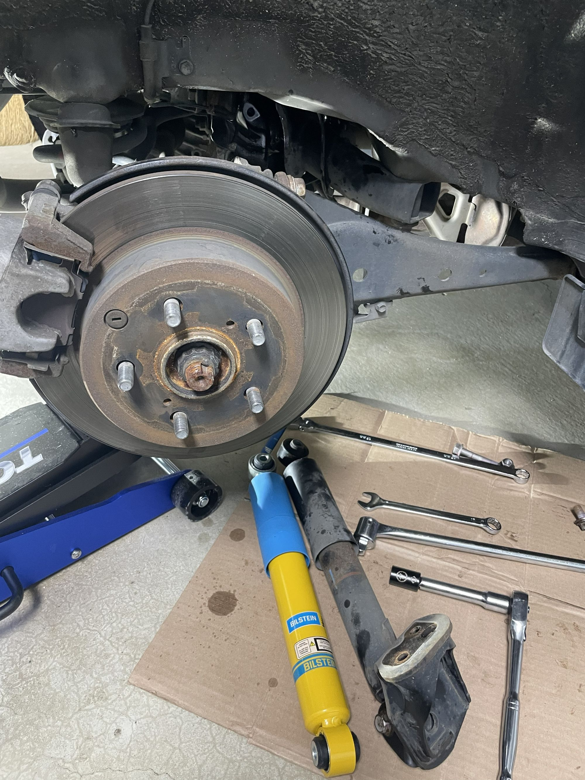 I realized that simply throwing stock parts back on wouldn't solve the "sag" problem. I needed a solution that accounted for the extra weight hanging off the back. After some research, I chose the Bilstein B6 4600 series shocks. These are high-pressure gas units designed to provide better control and support for vehicles carrying extra loads, making them the perfect analytical choice for a car that actually gets used for gear.